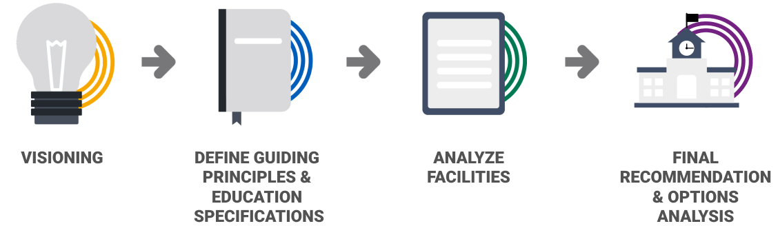 Step 4: Final Recommendation & Options Analysis In this final step, our education consultants will make recommendations for how the District can implement the changes needed to meet the community’s education vision. These recommendations will include prioritizing work that needs to be done on the District’s existing facilities and cost estimates.